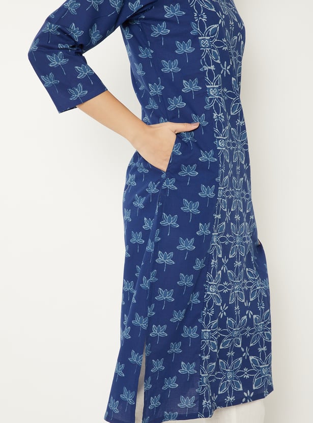 Keep it classic with this printed straight kurta, featuring a round neck, 3/4th sleeves, a side pocket, and side slits. Its timeless silhouette and vibrant print make it a versatile choice for everyday wear.