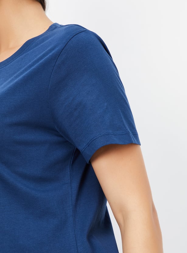 Keep it casual and cool with this printed T-shirt, featuring a classic round neck and comfortable half sleeves.
