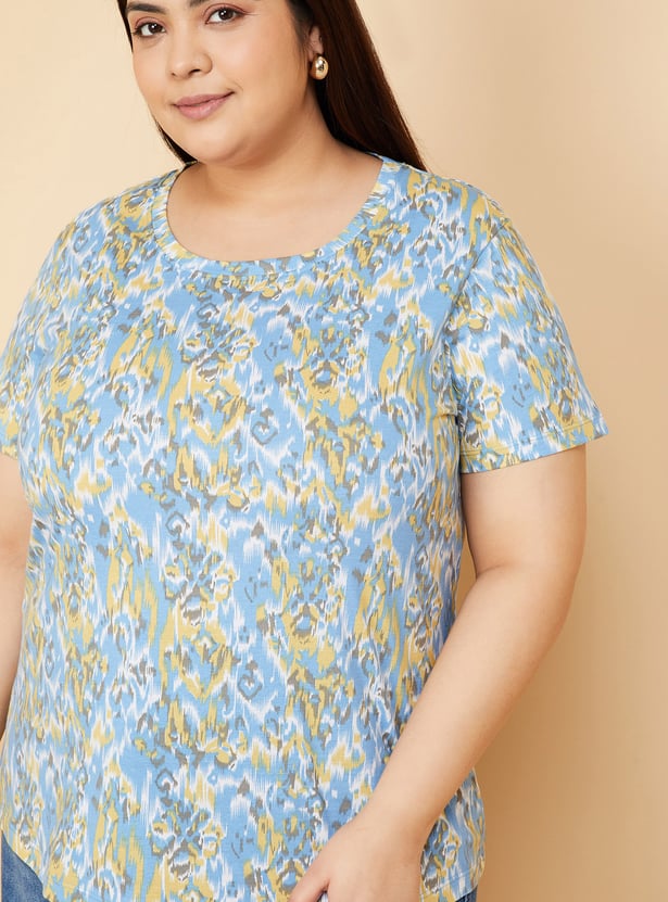 Add a splash of personality to your everyday wardrobe with this printed T-shirt, featuring a soft round neck and half sleeves for breezy comfort. The vibrant print brings playful charm, making it ideal for coffee runs, casual meetups, or laid-back weekends. Model Size :