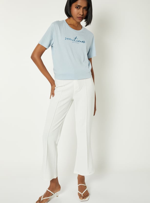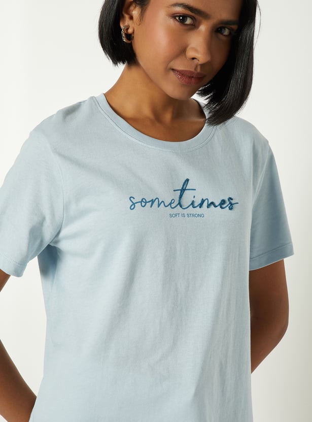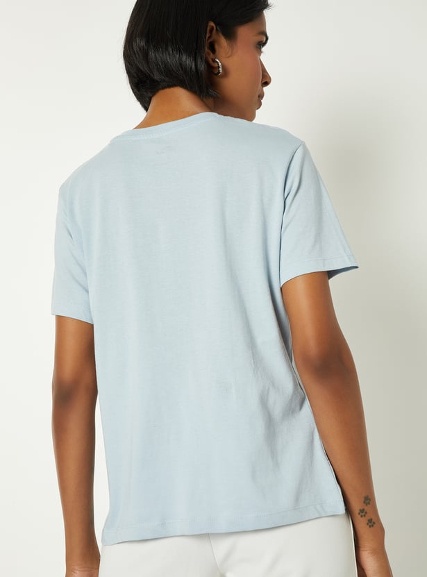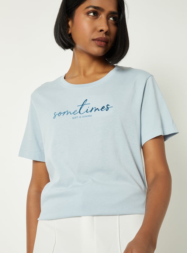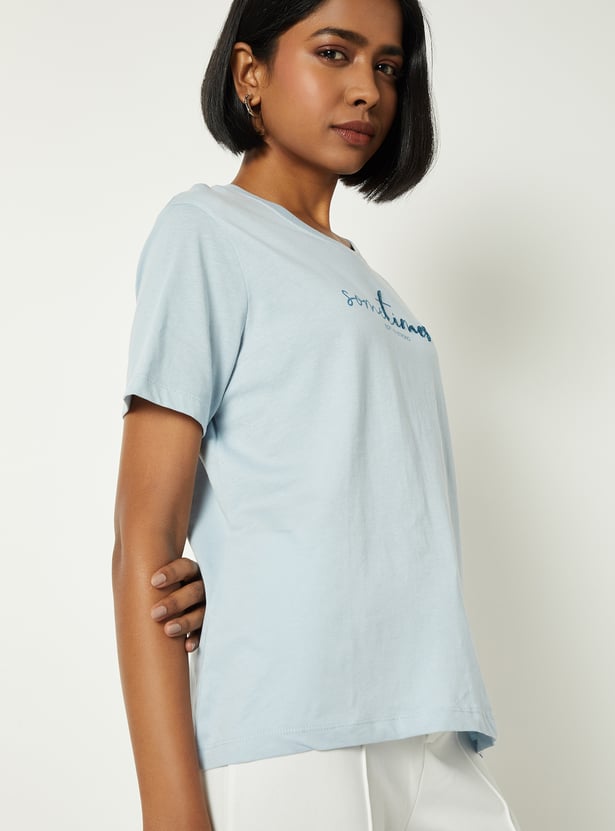 Refresh your everyday wardrobe with this easygoing printed T-shirt featuring a classic round neckline and comfy half sleeves. Model Size :