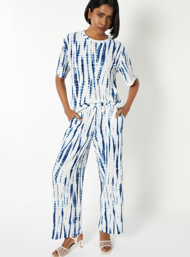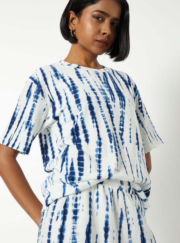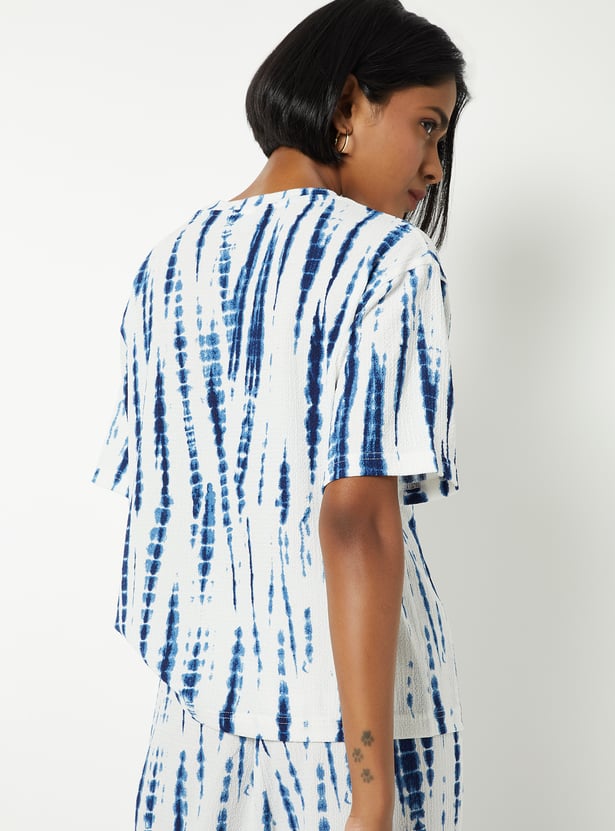 This printed top features a round neckline and half sleeves, offering a relaxed yet polished look. The all-over print adds a touch of vibrancy, making it a versatile piece for everyday wear.
