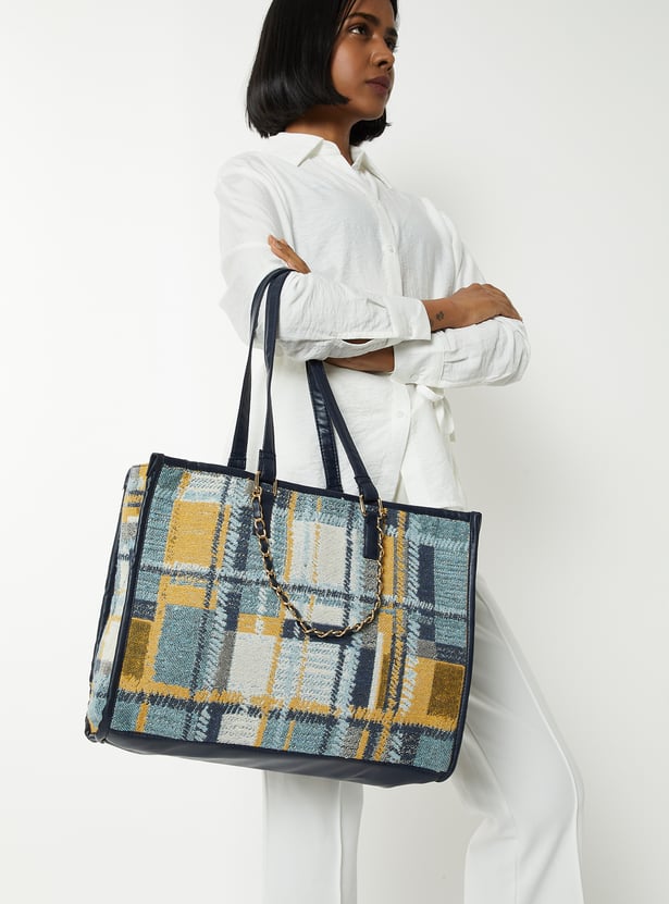 Step out in style with this solid tote bag. Featuring a zip closure, twin handles, and an inner pocket, it combines practicality with a sleek, versatile design.
