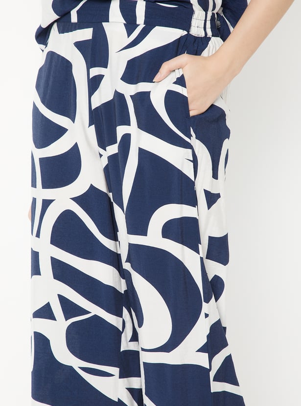 Stay stylish and comfortable with these printed wide leg trousers, designed for a relaxed fit. Featuring an elasticated waist and practical pockets, they combine ease with everyday versatility, making them perfect for casual outings.
