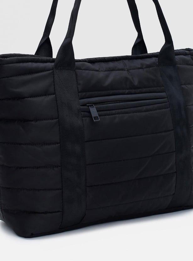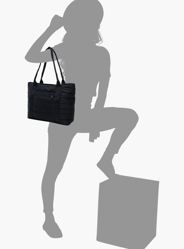 Your reliable companion for every day, this tote bag features a quilted exterior, a fully padded design, and a water-resistant coated construction. It features flat shoulder straps, an exterior zip pocket, and a main spacious zip compartment.