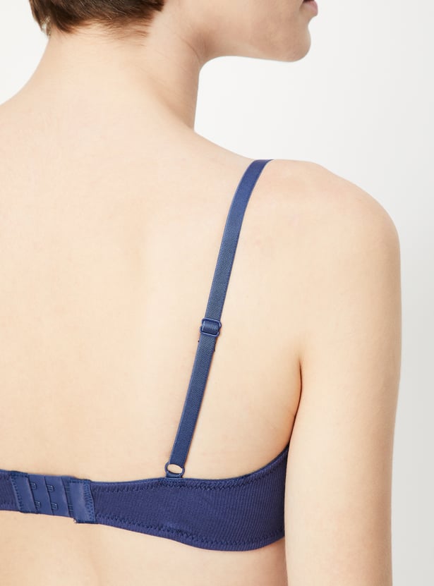 Ensure everyday comfort with this bra. The ribbed design adds to the style. It has padded cups for support. The adjustable strap and back closure complete the look.