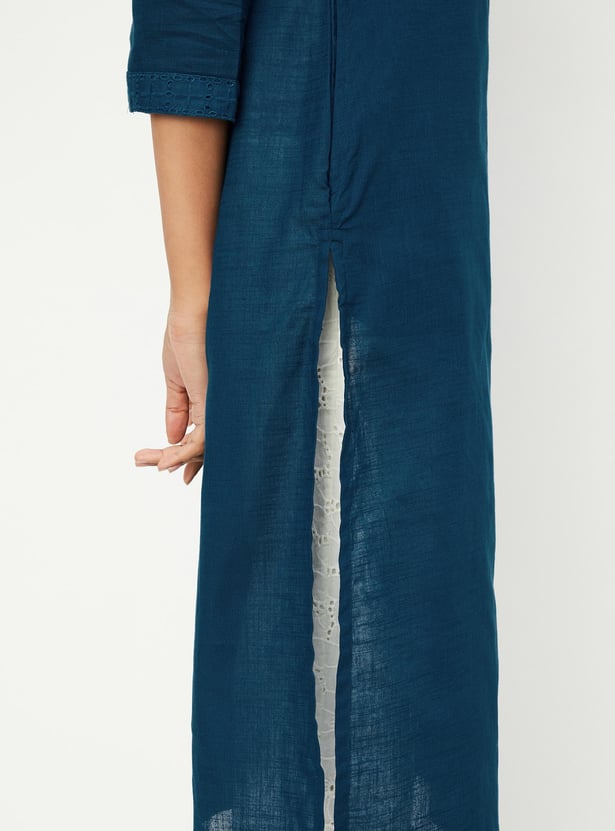 Women Schiffli Yoke Straight Kurta