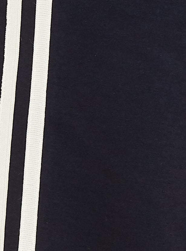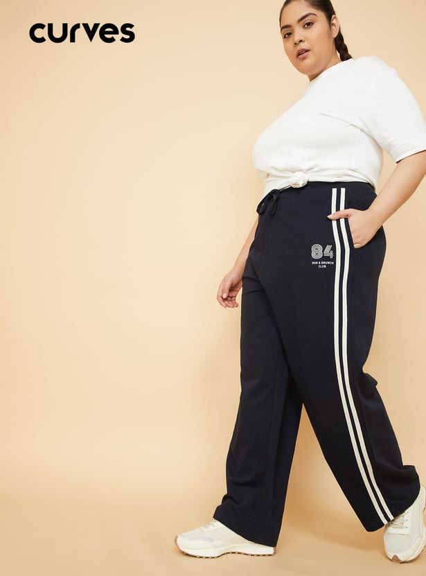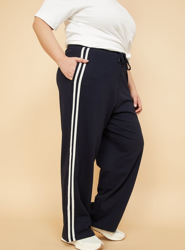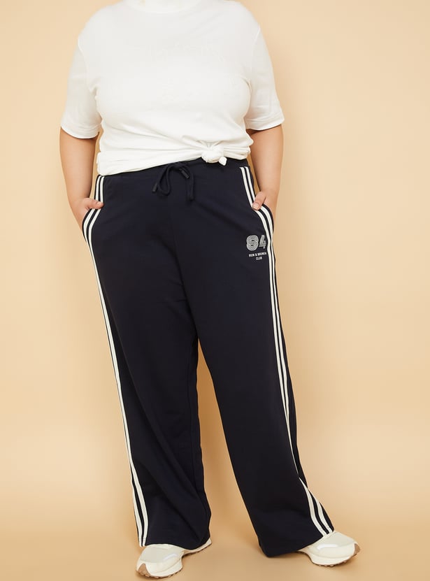These wide-leg track pants feature a sporty side stripe and an elasticated waist with a drawstring for a comfy, adjustable fit. A single side pocket adds easy functionality to the relaxed silhouette. Model Size :