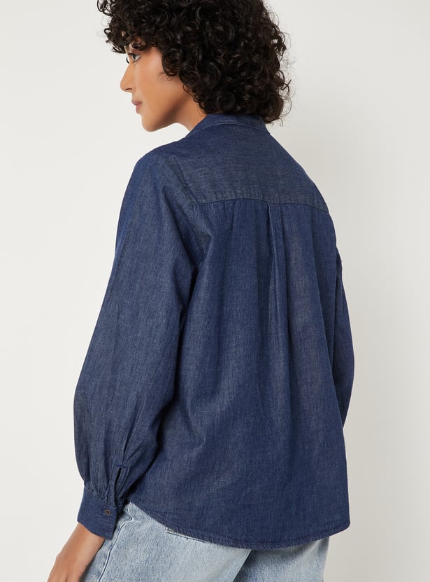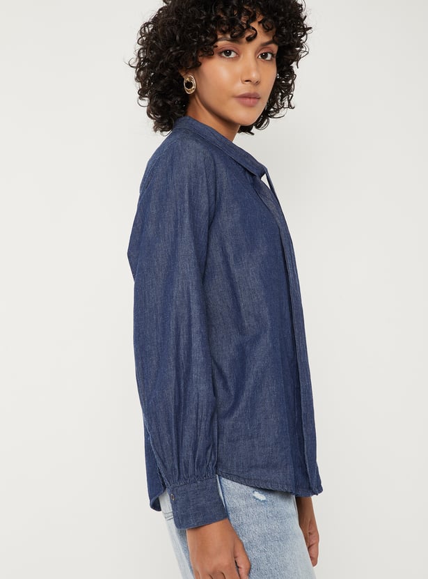 Women Solid Denim Shirt