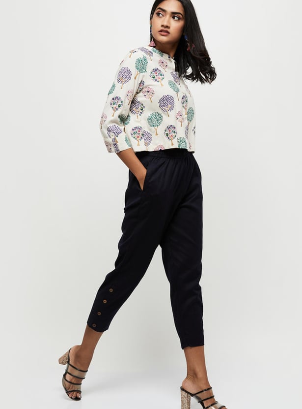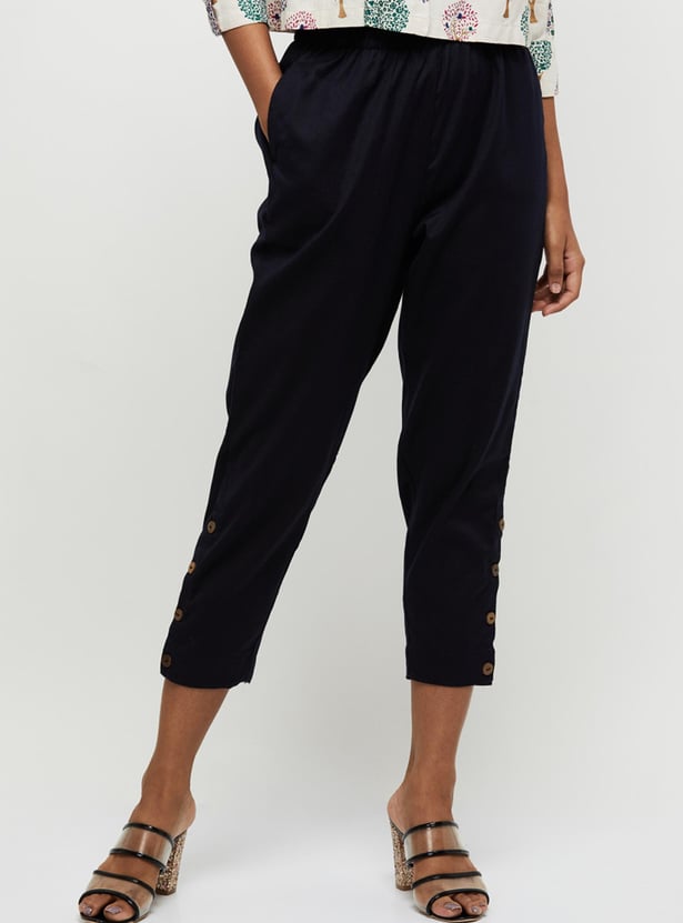 Women Solid Elasticated Capris
