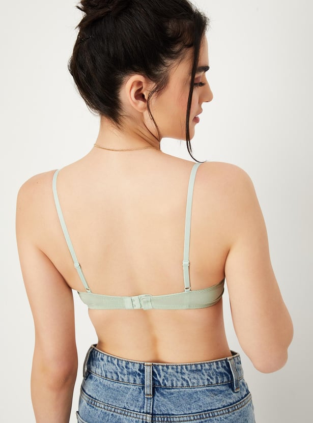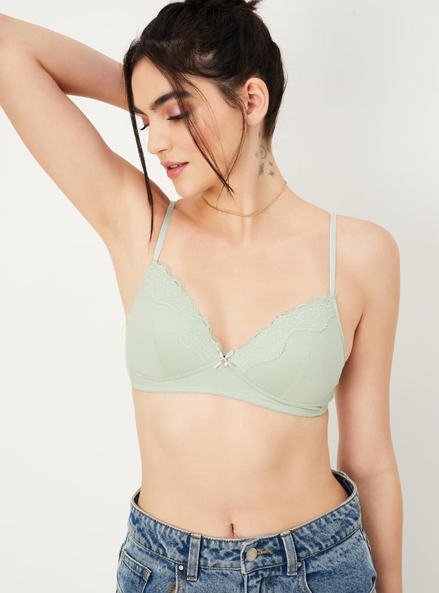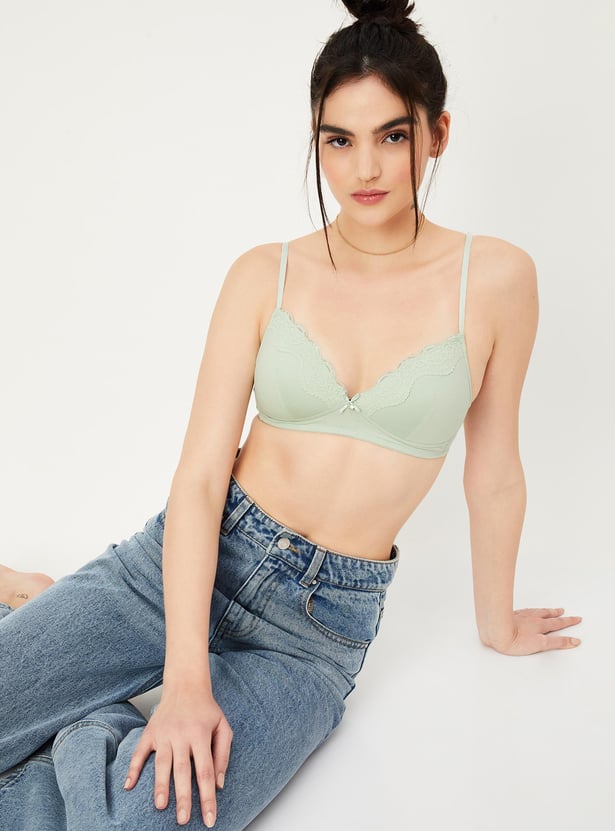 To keep you comfy all day, this bra is made with padded and non-wired construction a solid surface, lace detail and adjustable shoulder straps.