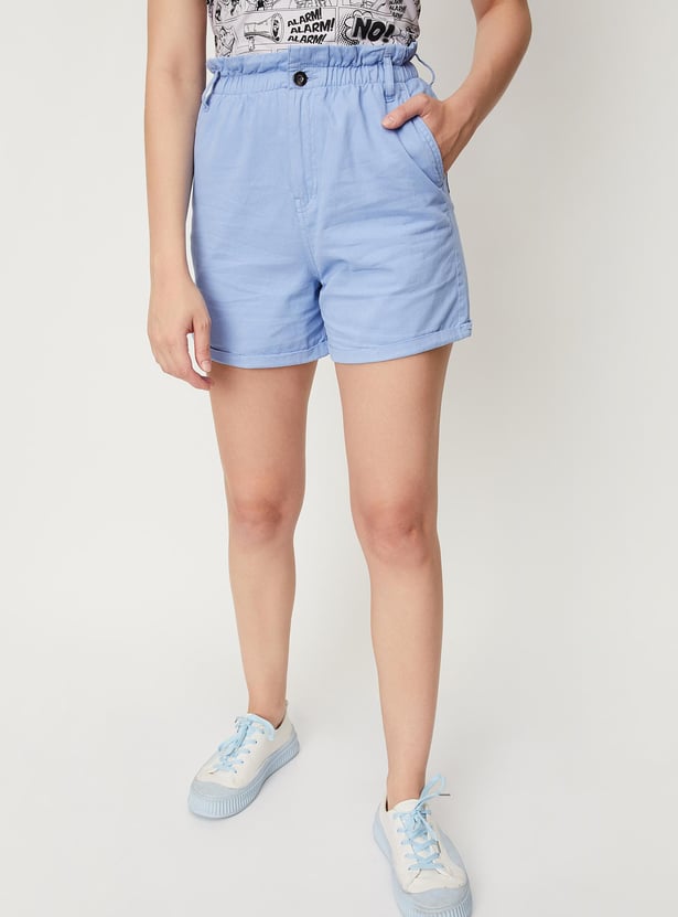 Women Solid Paperbag Waist Shorts