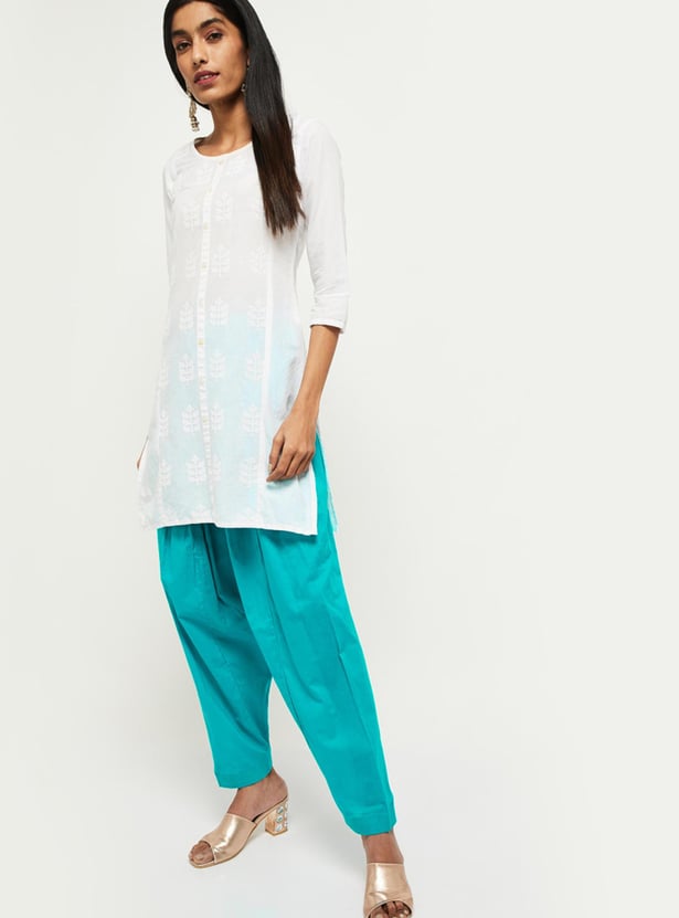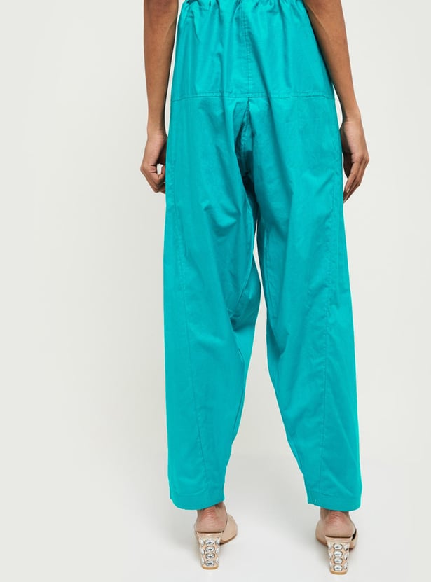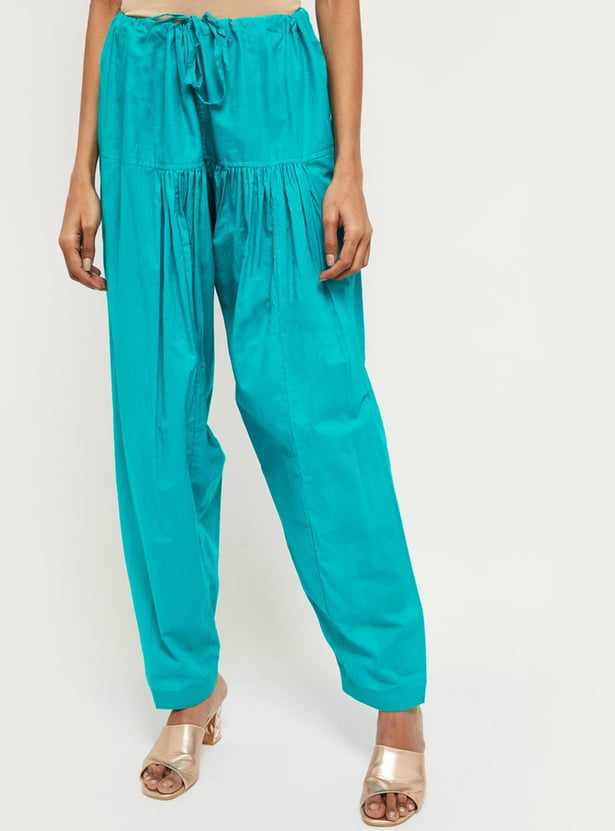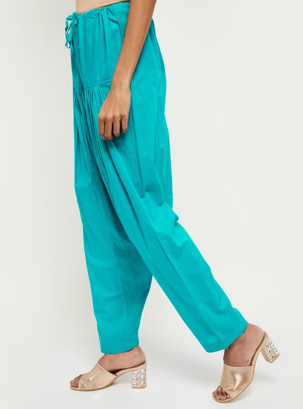 An ideal pick for an ethnic wardrobe, this pair of salwar is designed with a solid surface and drawstring closure.
