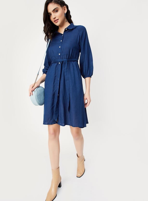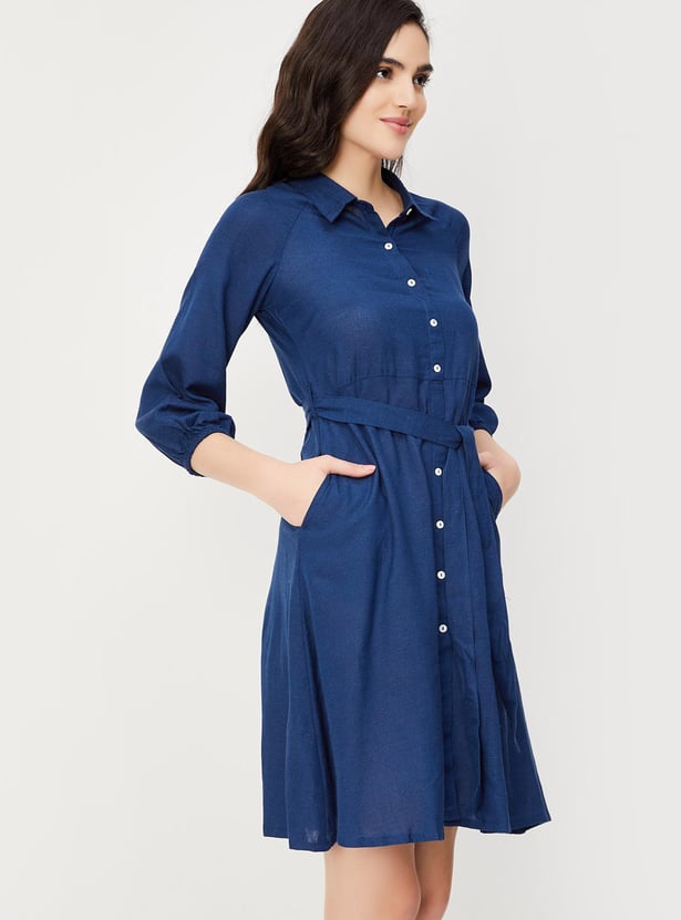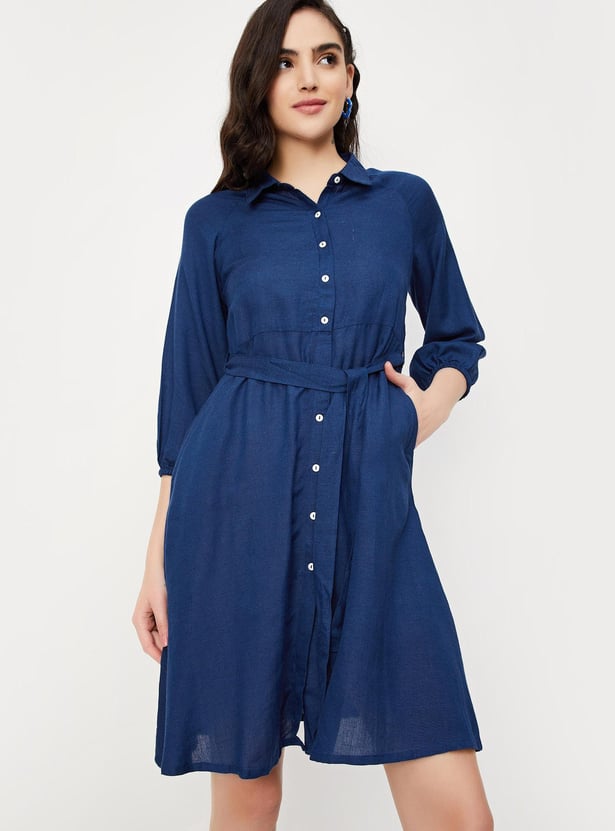 Women Solid Shirt Dress