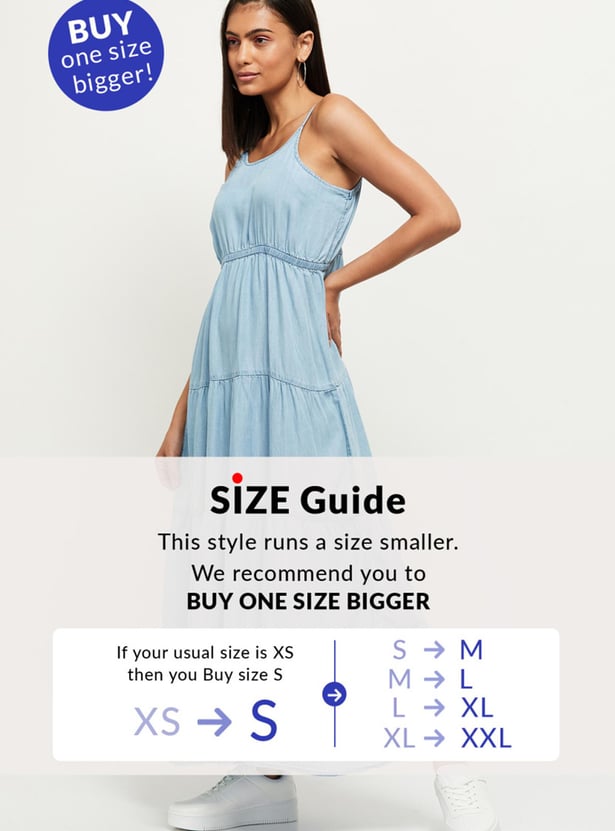Women Solid Shoulder Strap A-line Dress