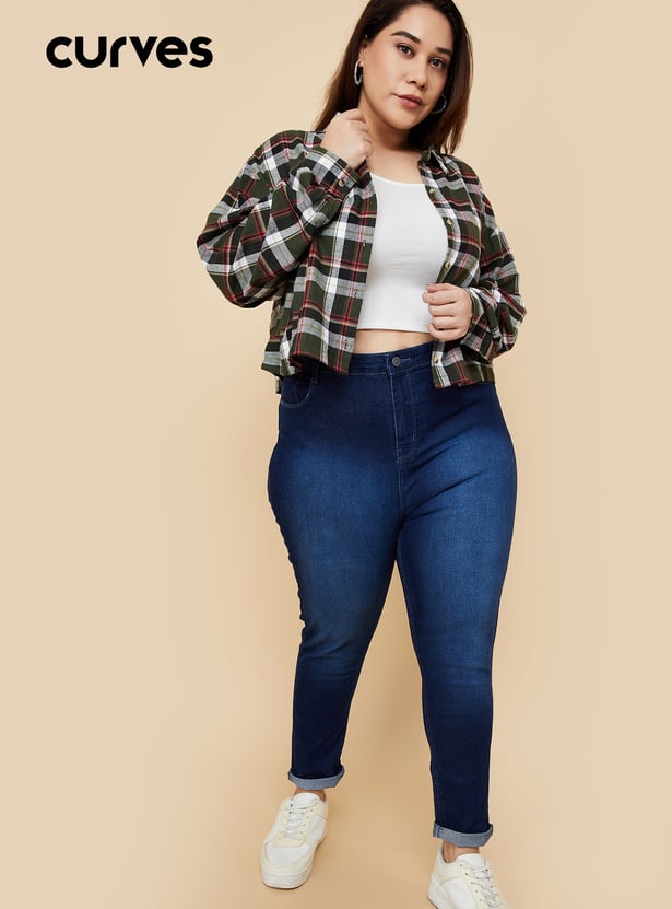 Experience elegance and style with these chic solid skinny-fit jeans featuring a snug, body-hugging design that accentuates your silhouette, complemented by belt loops, multiple pockets, a mid-rise waist, and a secure button-zip closure. The solid color palette of these jeans exudes a clean and classic look.