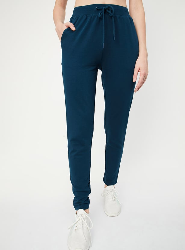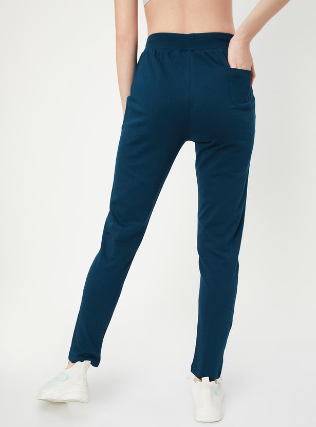 Workout in style with these track pants featuring a ribbed waist, drawstring closure, side and back pockets, and a full-length profile.