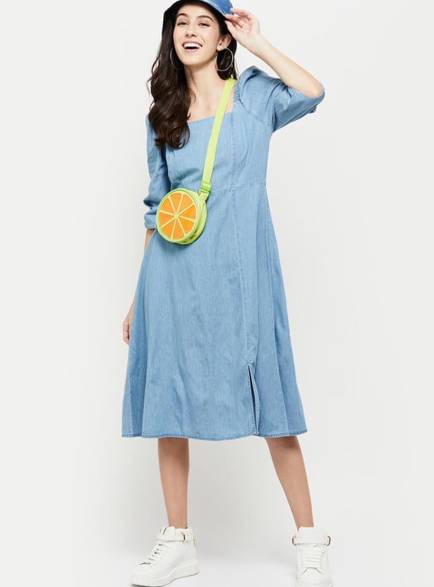 Make a style quotient with this A-line dress is designed with a solid surface, square neckline, and three-quarter sleeves.