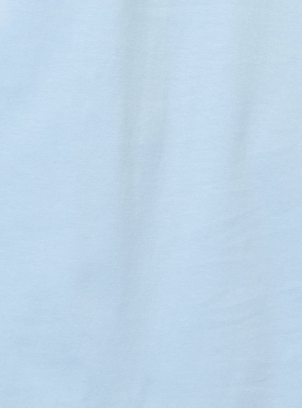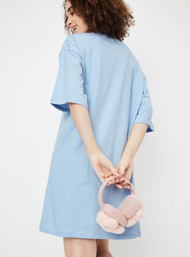 Lounge in style with a dash of fun in this chemise. The stitch print adds a playful touch, while the boxy fit keeps you comfy. It is designed with a round neck and half sleeves.