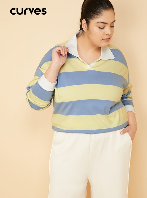 Women Striped Boxy Fit Sports T-shirt