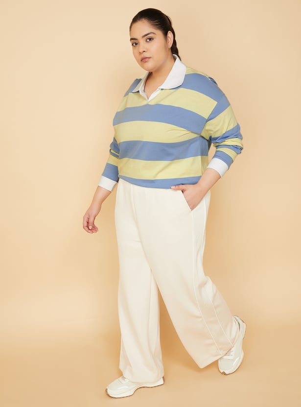 Make a bold statement with this striped boxy fit sports T-shirt. Featuring a trendy crop length, a stylish Johnny collar, and full sleeves, it blends sporty comfort with fashion-forward design. Model Size :