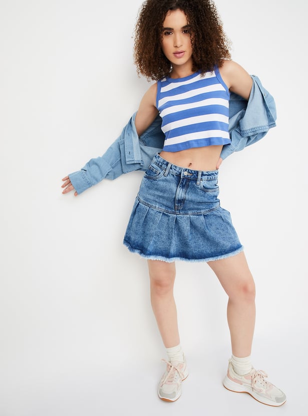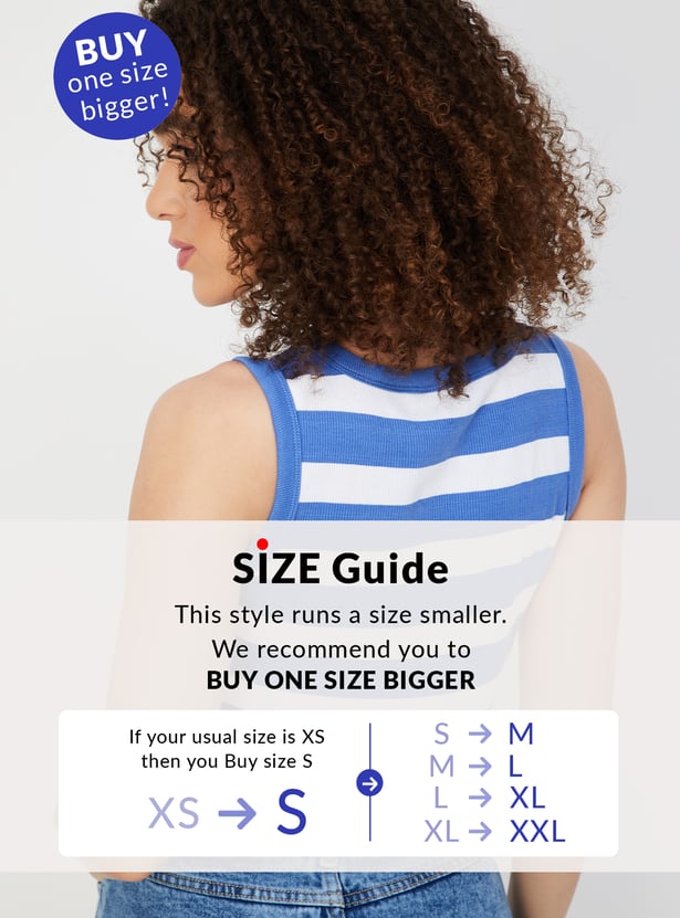 Unleash your vibe with this striped crop tank top. Featuring a round neck and a sleeveless design, it's your go-to piece for that effortlessly cool look.