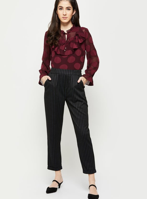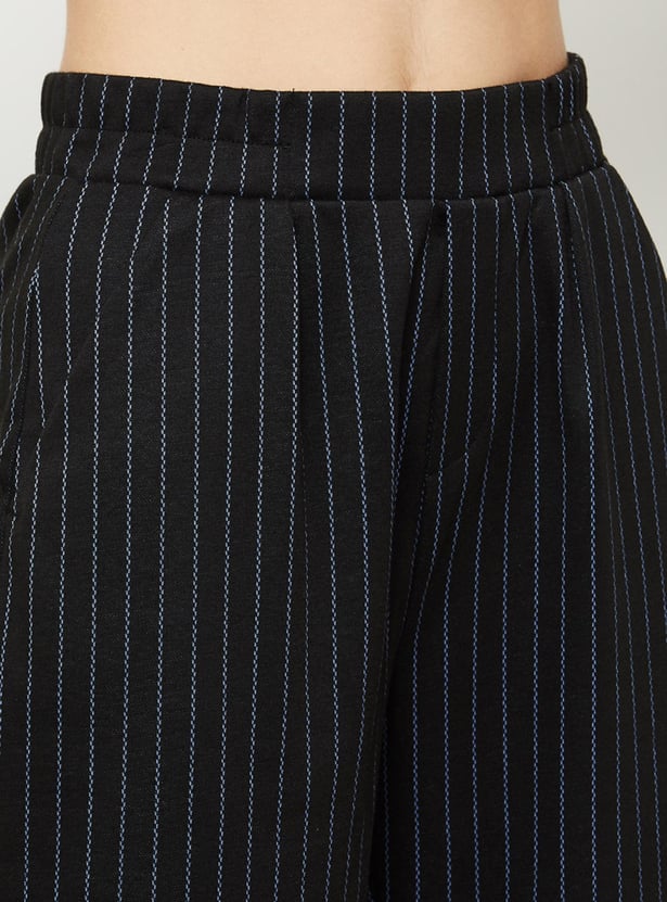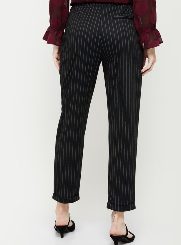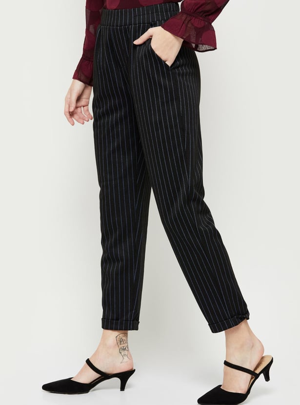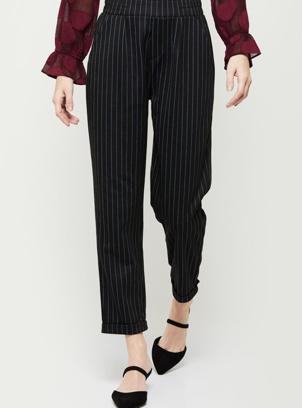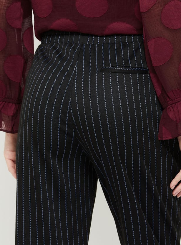 Women Striped Flat Front Relaxed Fit Trousers