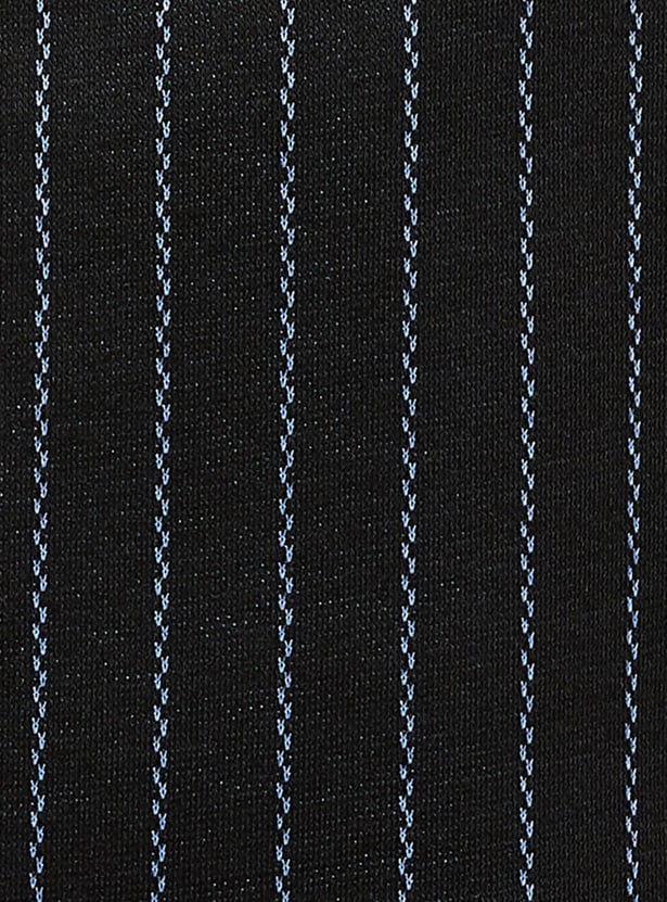 A versatile addition to your wardrobe, this pair of trousers features a flat front, side pockets, a back welt pocket, and a classic striped pattern. Style these trousers with a patterned blouse and team it with kitten heels and a shoulder bag for a polished look.