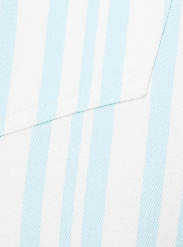 A flattering staple for this summer, this pair of hot pants is updated with a striped pattern. It features a belt loop waist, 5 pockets, and a raw hem. Team up this pair with a top and sneakers for a weekend-ready look.