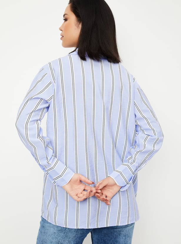 Elevate your wardrobe with this classic striped shirt! Featuring a sharp collared design, button placket, and full sleeves with button cuffs, it’s the perfect balance of timeless style and modern sophistication.