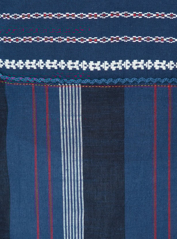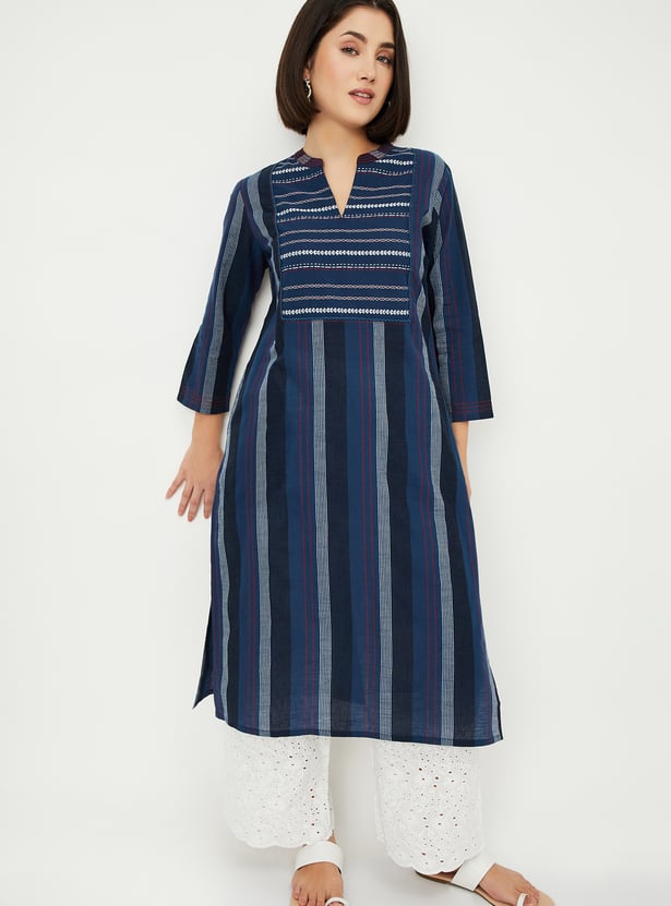 Elevate your ethnic wardrobe with this striped straight kurta, featuring intricate embroidery for a touch of elegance. The 3/4th sleeves and mandarin collar neck offer a classic look, while the side slits with side pocket add a modern twist for enhanced comfort and style.