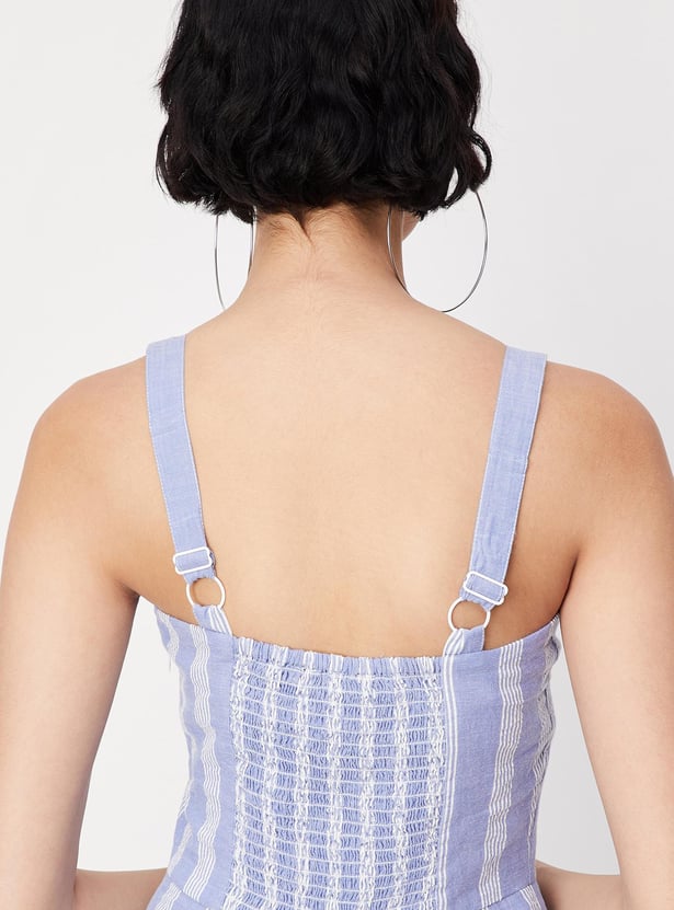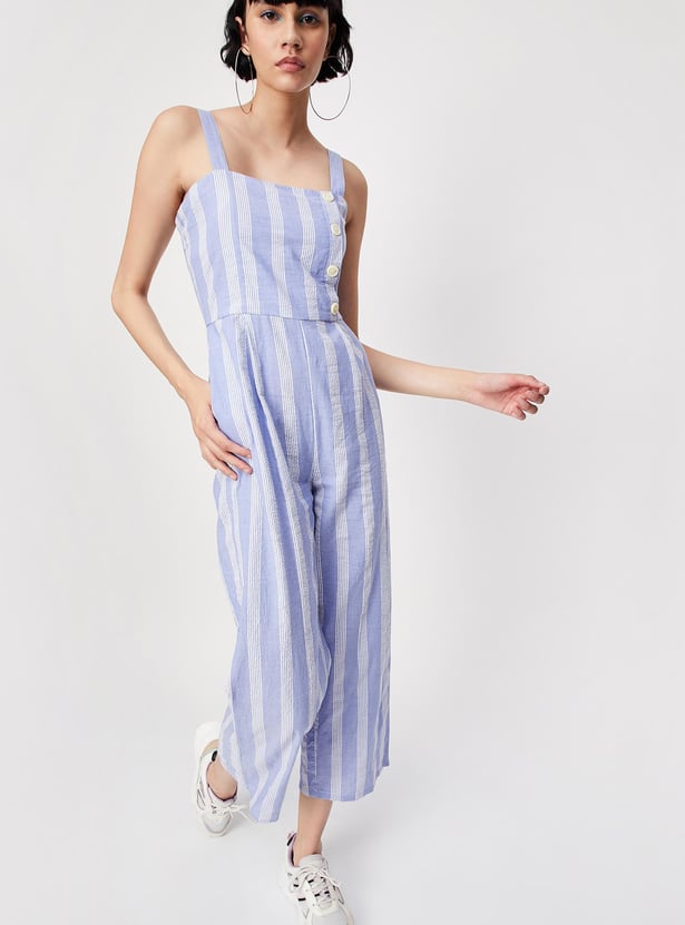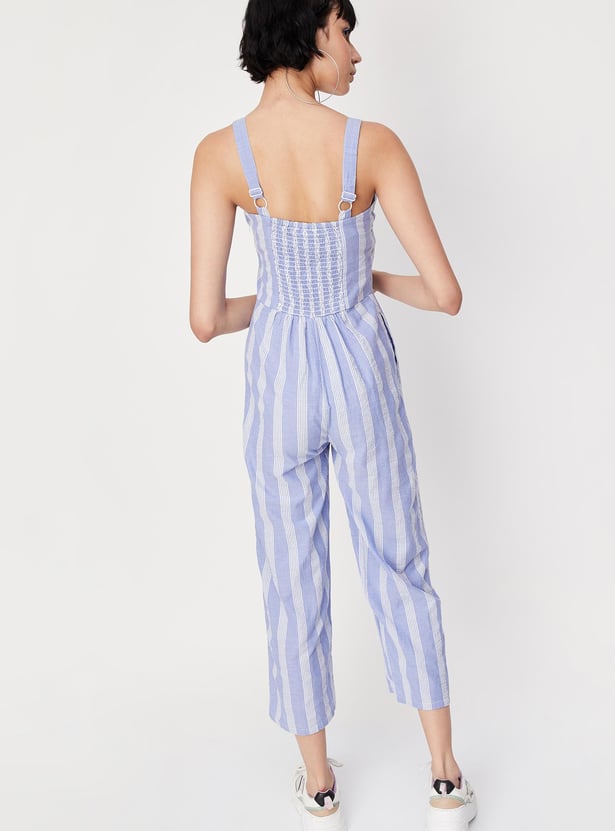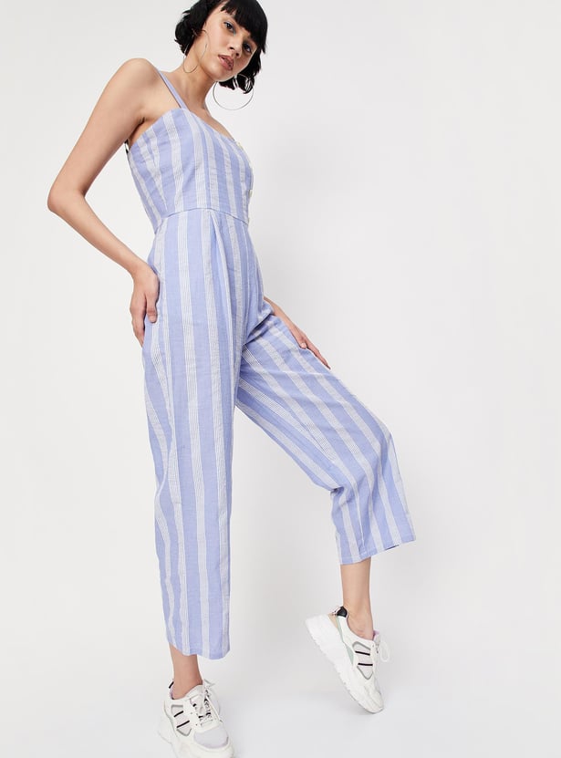 Women Striped Strappy Crop Jumpsuit