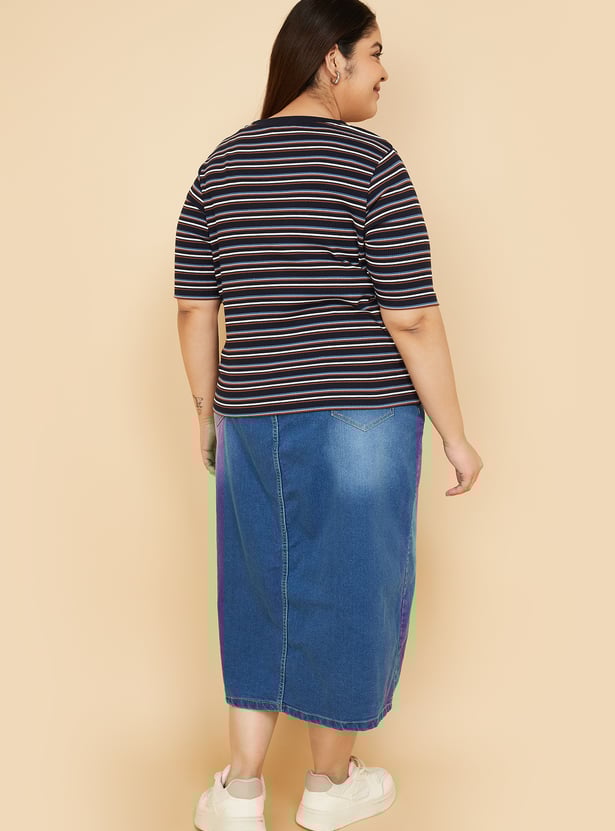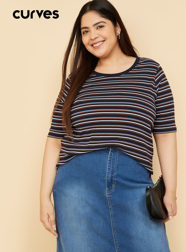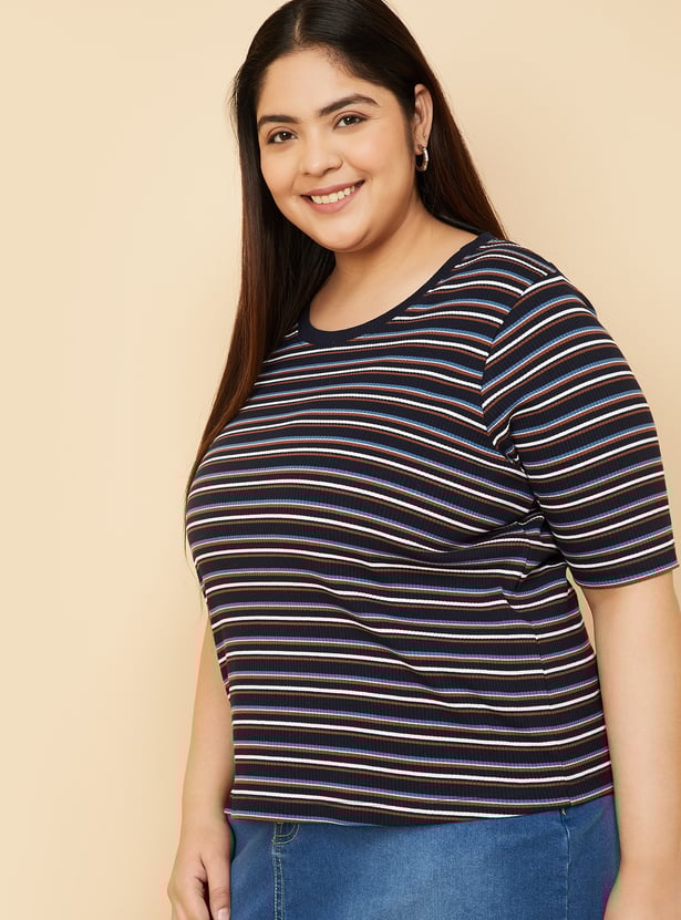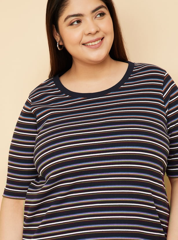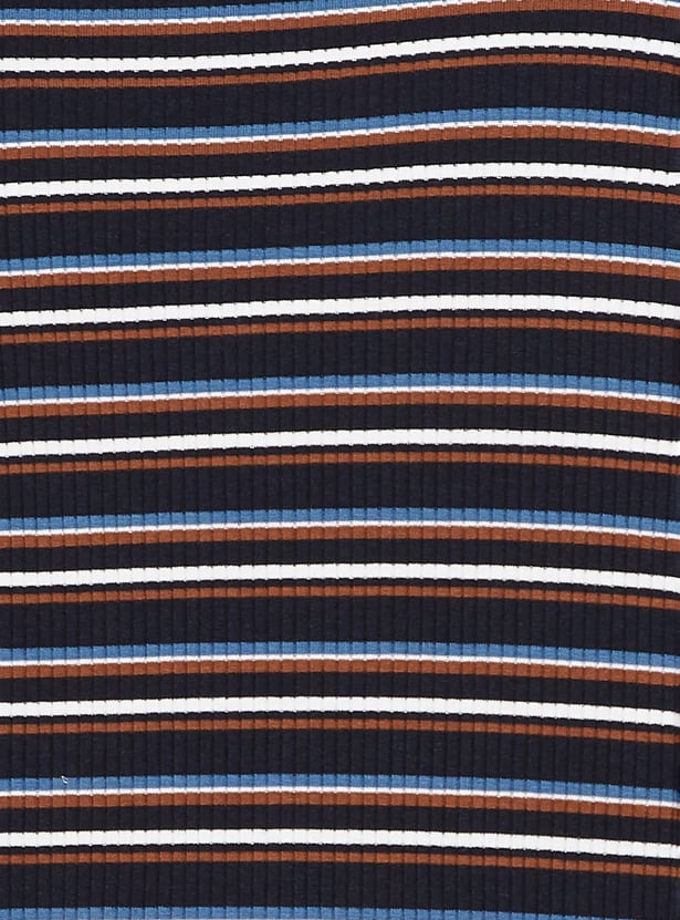 Add a touch of timeless charm to your wardrobe with this striped T-shirt. Featuring a classic round neck and comfortable half sleeves, it’s designed for effortless everyday wear. The versatile striped pattern makes it easy to style. Model Size :