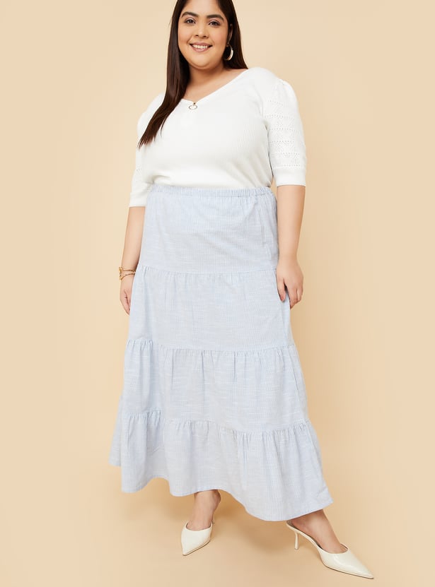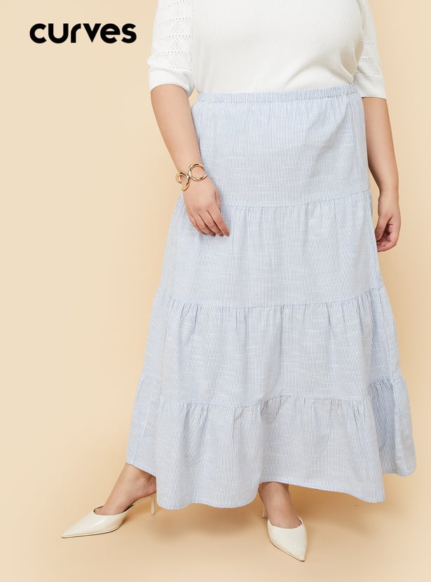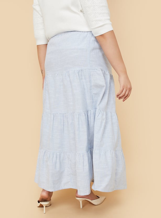 Women Striped Tiered Skirt