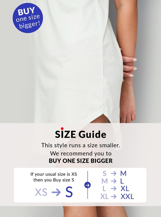 Add a splash of fun to your nighttime with this night dress. It has a round neck, extended sleeves, and cute Peanuts comic print at the back.