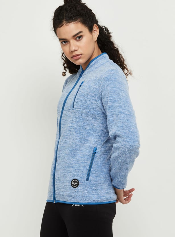 Women Textured Baseball Collar Sweatshirt