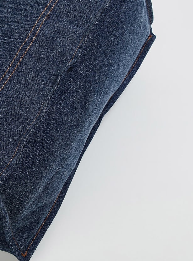 Women Denim Shopper Bag with Grommets