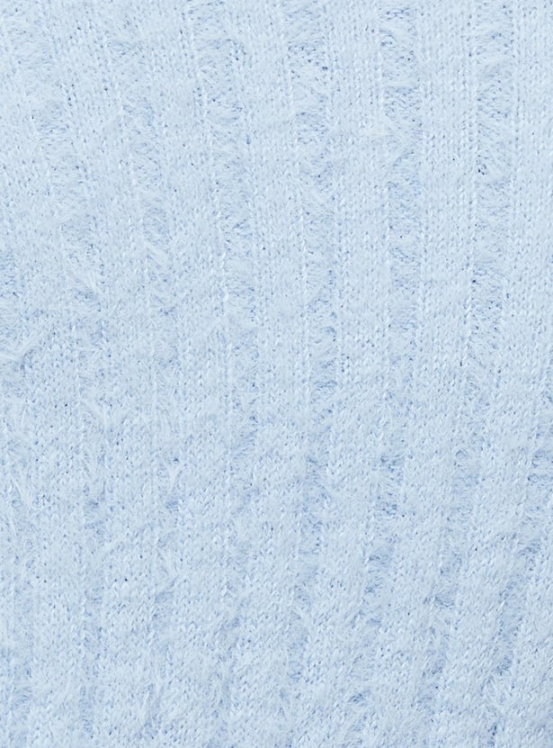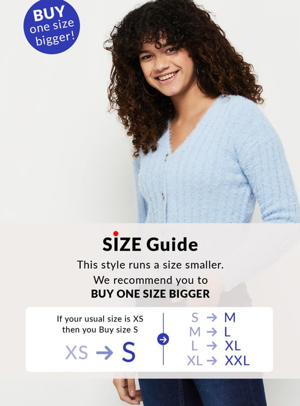 Women Textured Knit V-neck Crop Cardigan