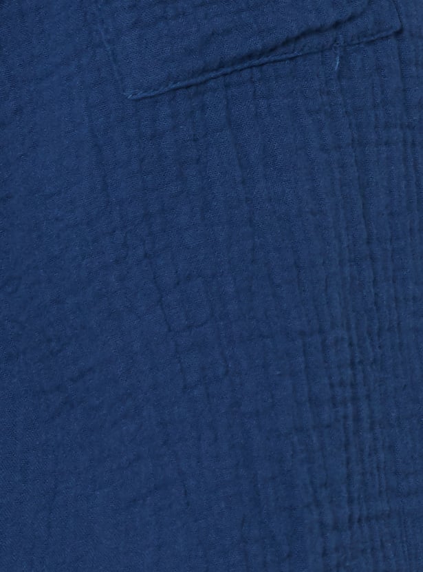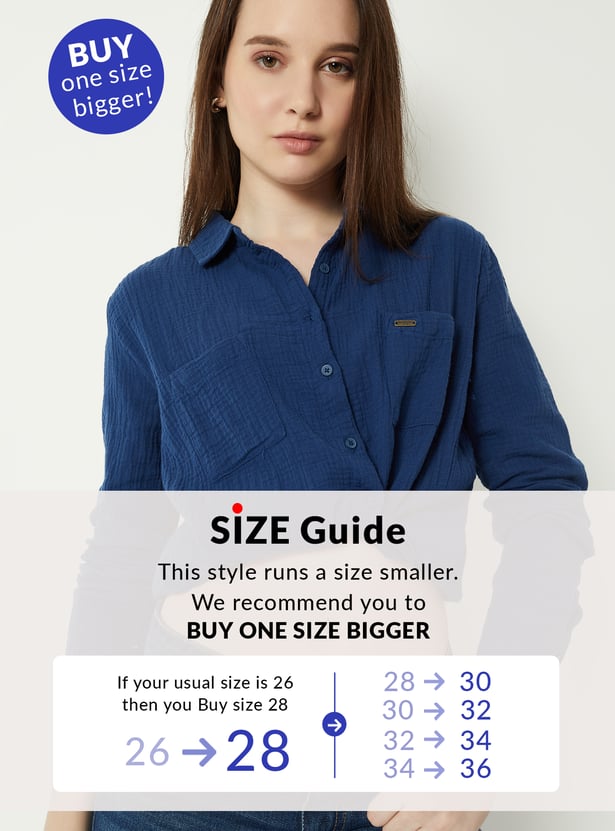 Elevate your wardrobe with this textured shirt, crafted for effortless style. Featuring a classic spread collar and full sleeves with buttoned cuffs, it combines structure with comfort. A practical patch pocket adds a functional detail, while the curved hem creates a flattering finish. Model Size :