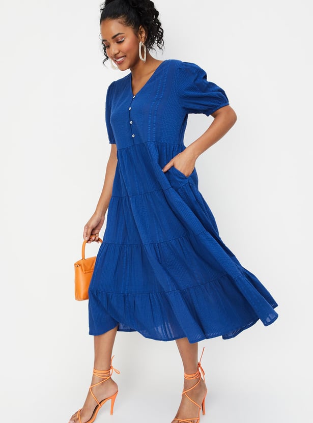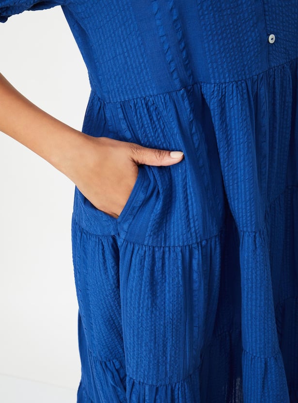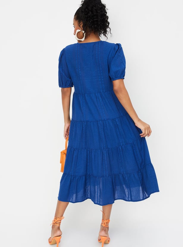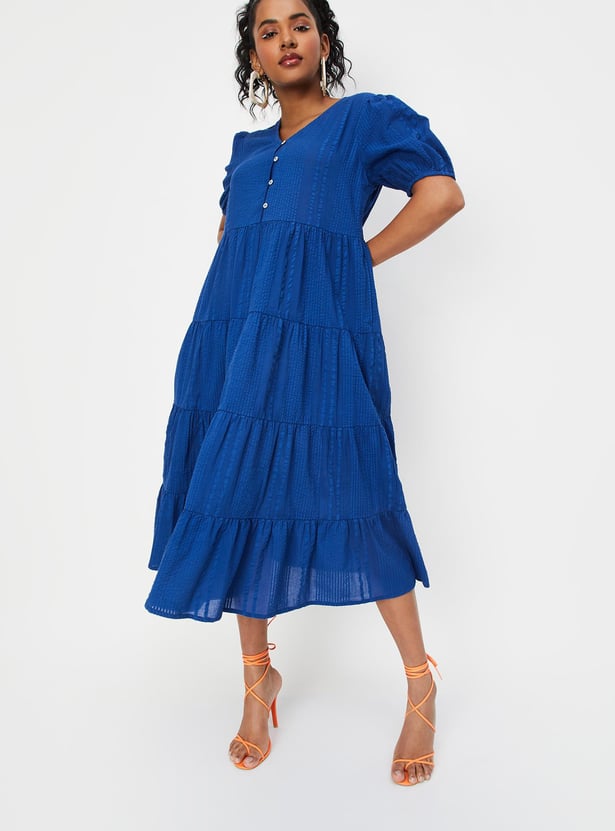 Women Textured Tiered Midi Dress