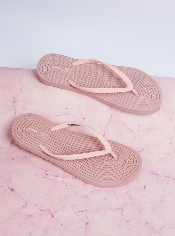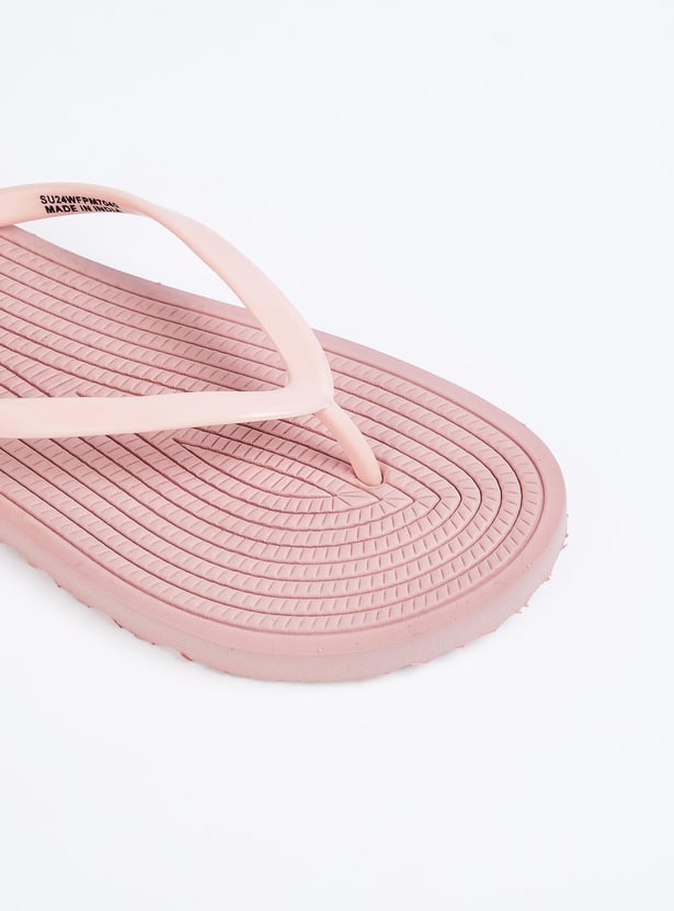 Women Textured V-Strap Flip Flops