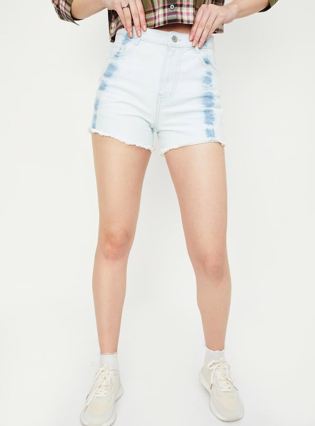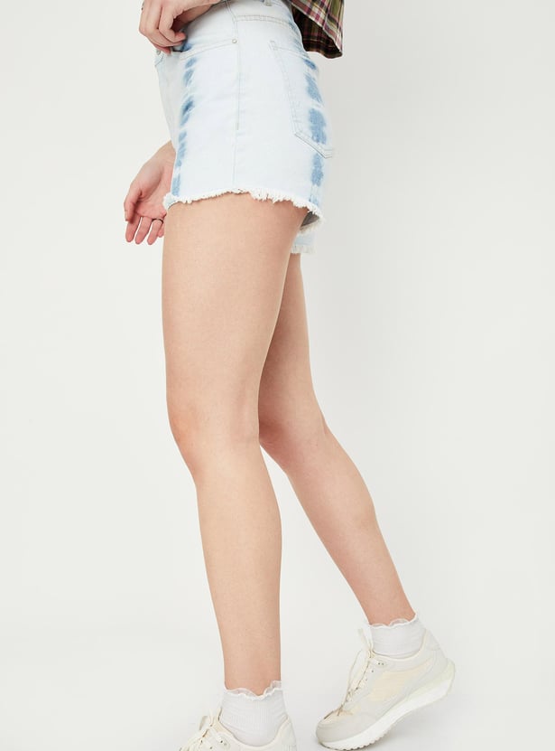 Get ready to rock this season in our must-have denim shorts. With a trendy tie & dye design, belt loop waist, 5 pockets, and a fringe hem, these shorts are perfect for all-day comfort and style.