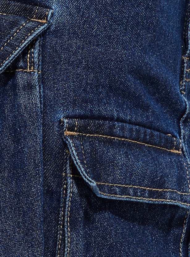 Add a touch of edge to your wardrobe with this tie-up detail denim mini skirt. Featuring cargo pockets for a practical yet stylish look, it has a button closure for a secure fit. The tie-up detail adds a trendy twist to the classic denim design.