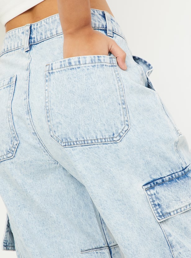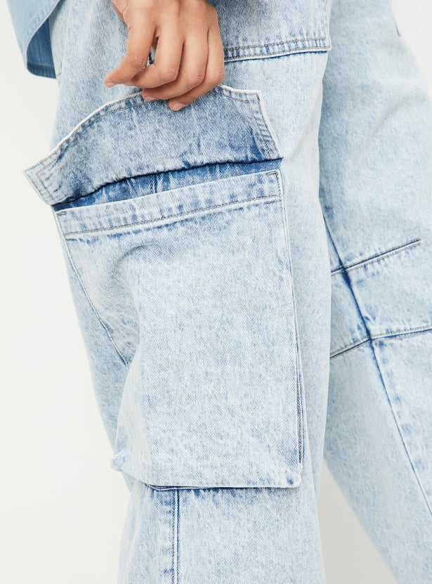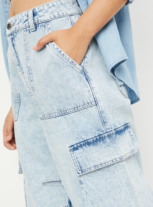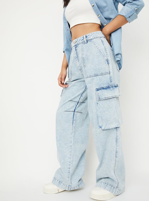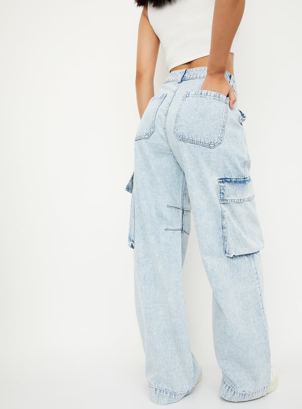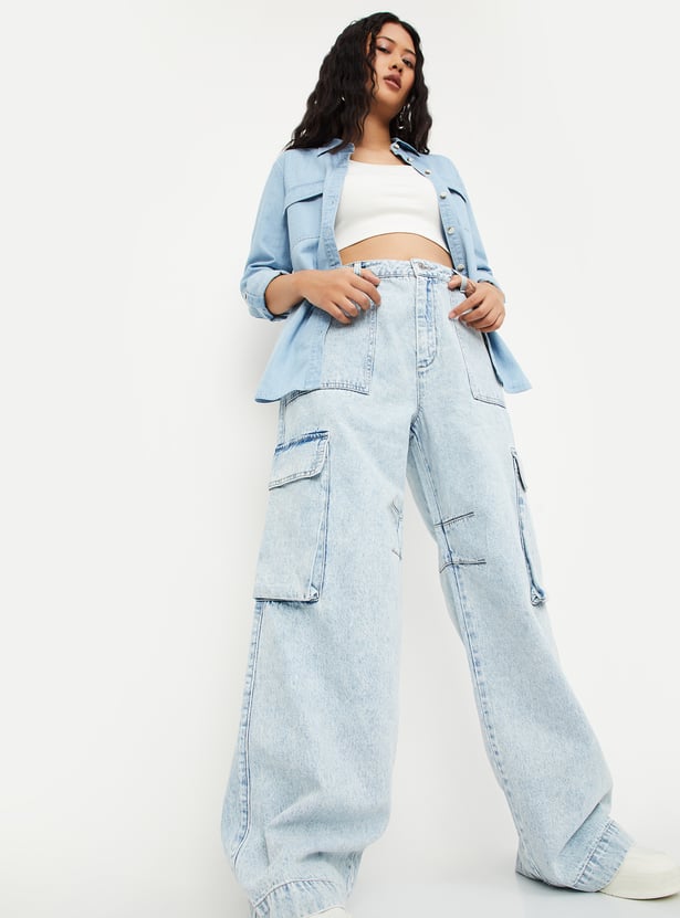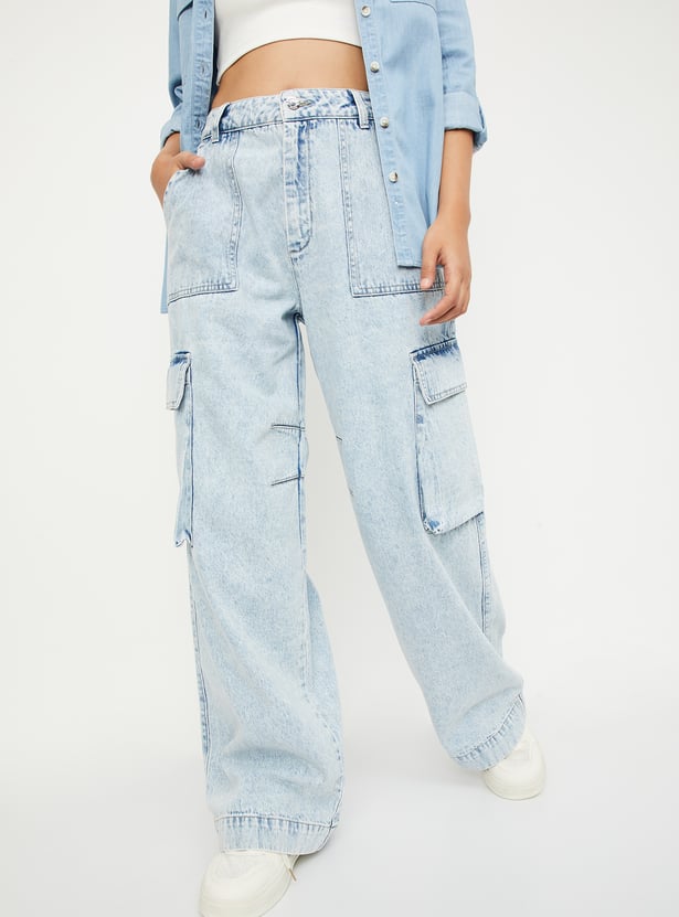 These solid cargo trousers combine functionality with casual edge, making them a versatile wardrobe staple. Designed with a high-rise fit, button closure, belt loops, and multiple pockets, they offer both style and utility for everyday wear. Model Size :