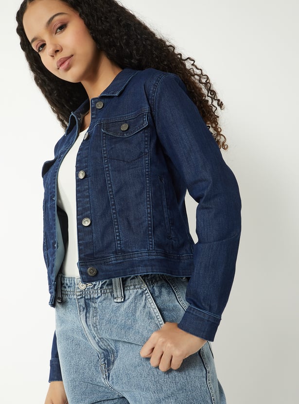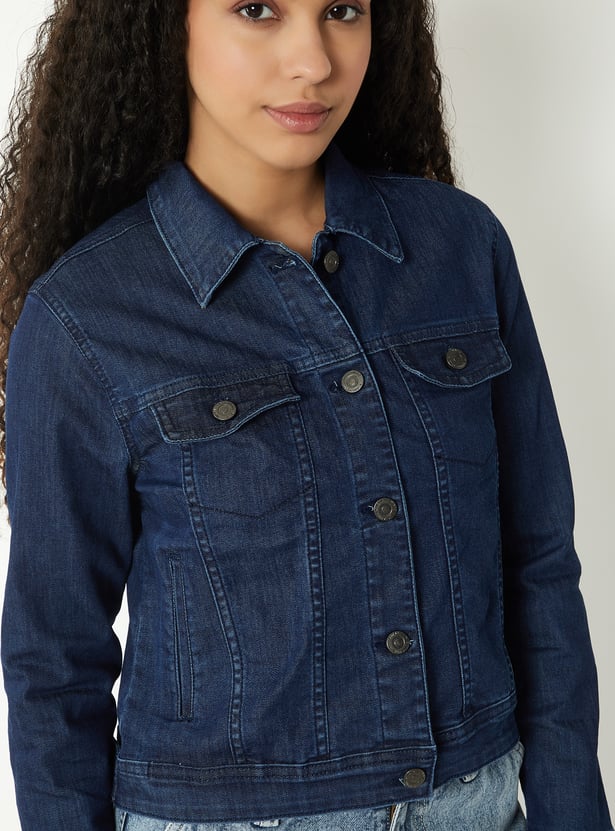 Refresh your casual layers with this washed denim jacket featuring a smart spread collar, a classic button placket, and full sleeves finished with button cuffs. Detailed with flap pockets for added style and utility. Model Size :