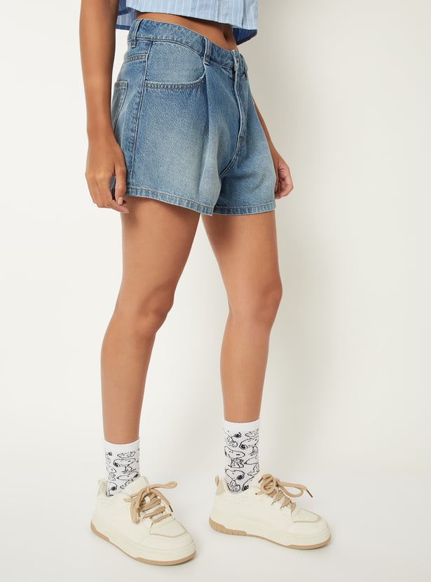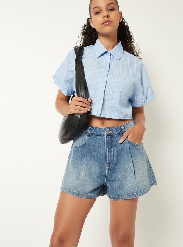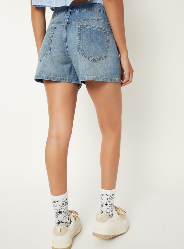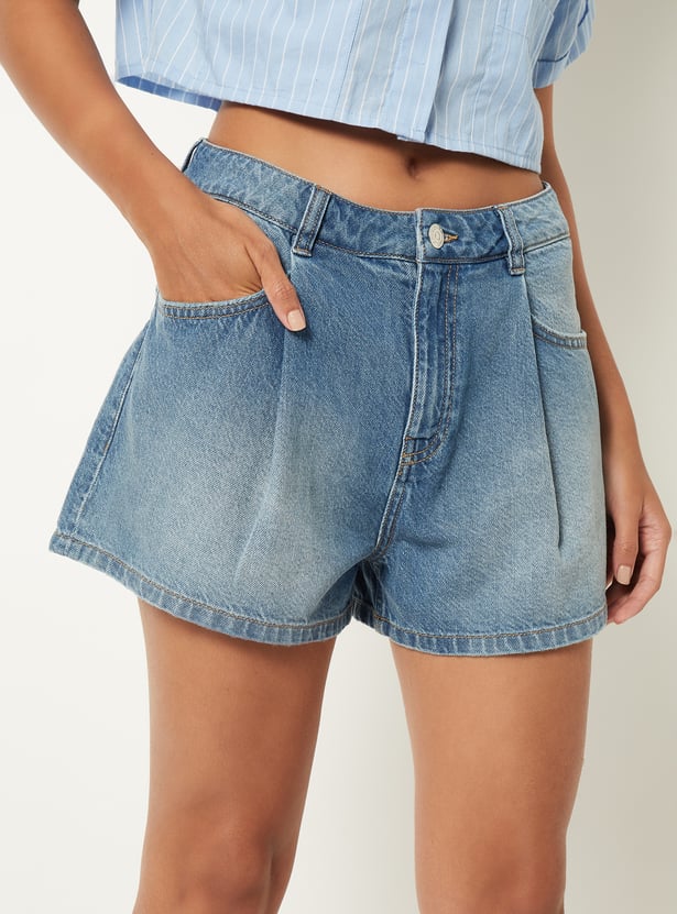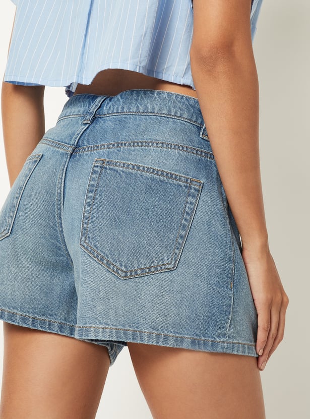 Refresh your casual wardrobe with these washed denim shorts designed for everyday ease. Featuring a button and zip closure, functional pockets, and belt loops, they offer classic style and comfort.