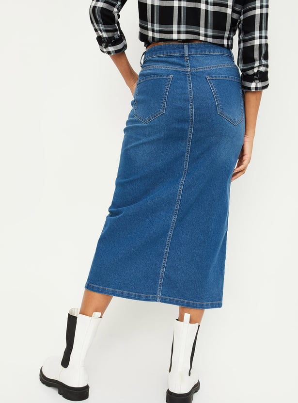Women Washed Denim Skirt