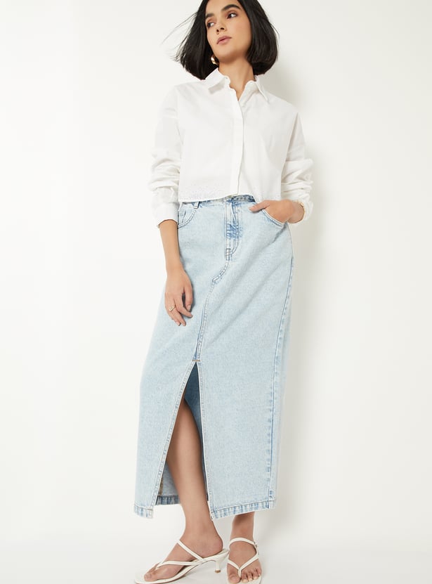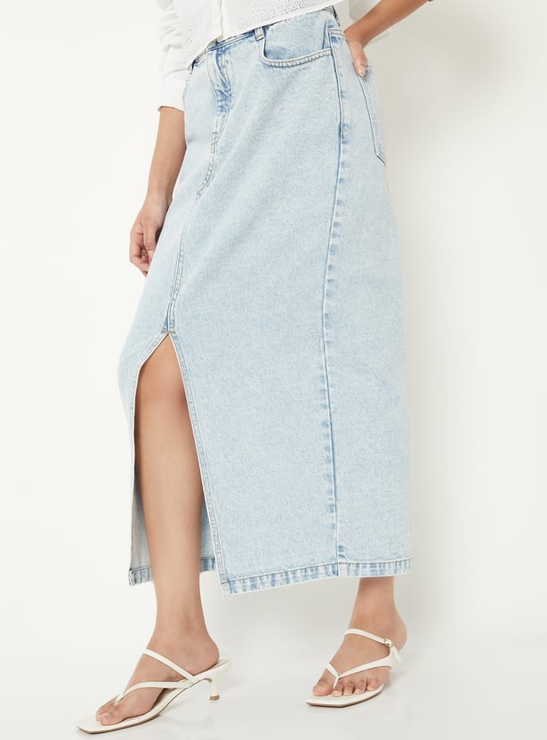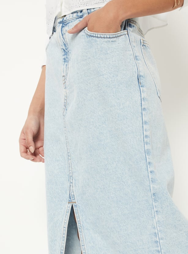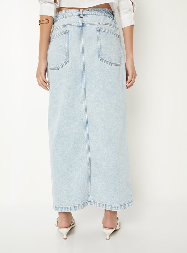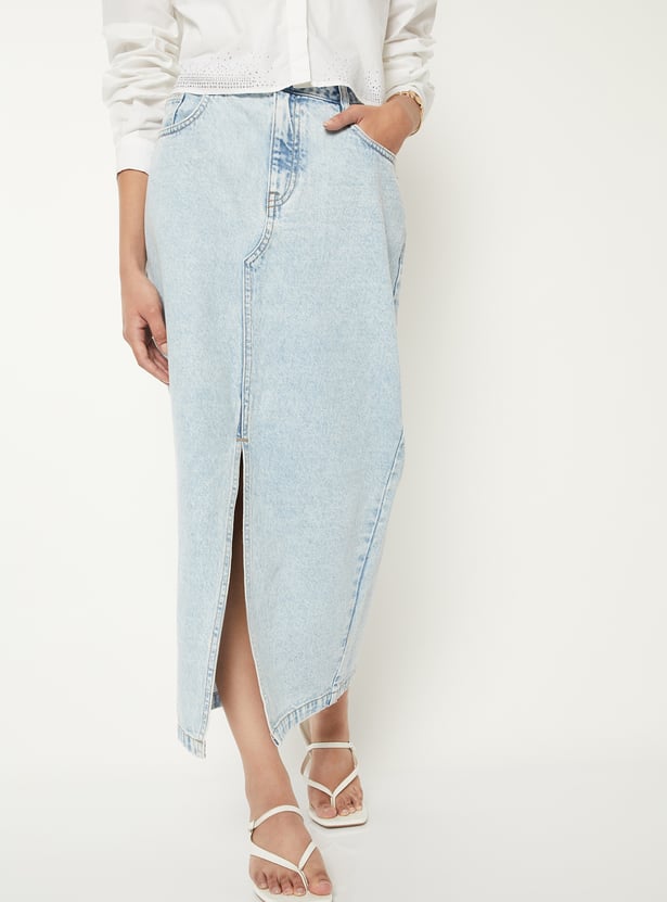 Women Washed Denim Skirt