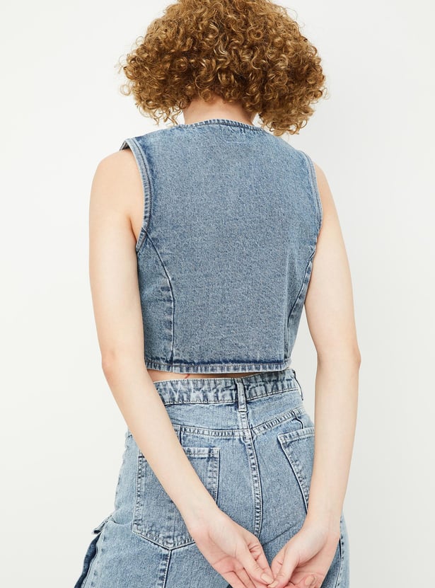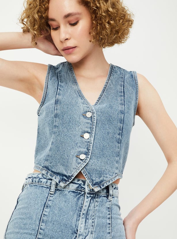 Elevate your wardrobe with this stylish Denim Waistcoat. With its classic design and modern twist, this versatile piece instantly adds flair to any outfit. Complete with a V-neck, button closure, and sleeveless silhouette, it's the perfect addition to your fashion arsenal.
