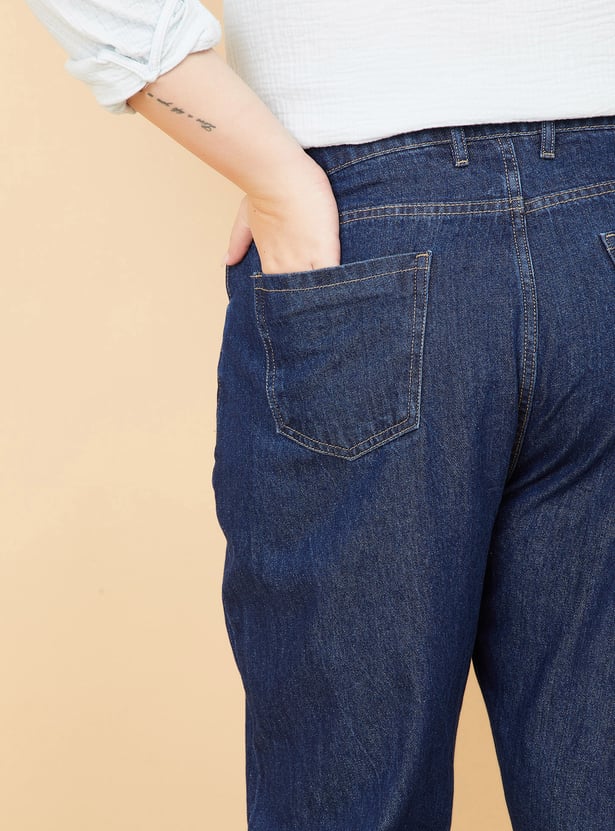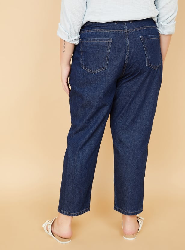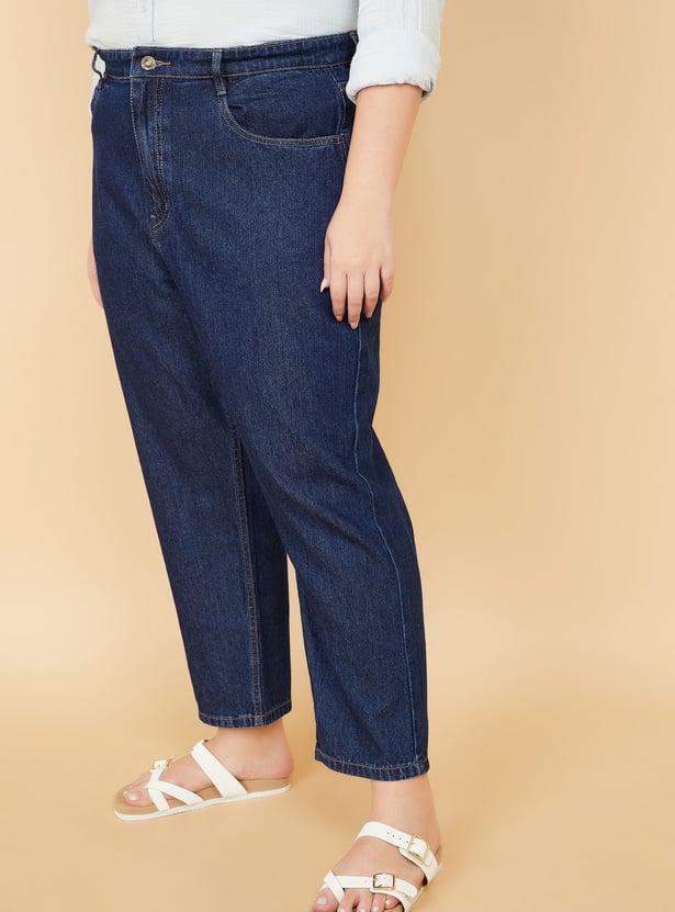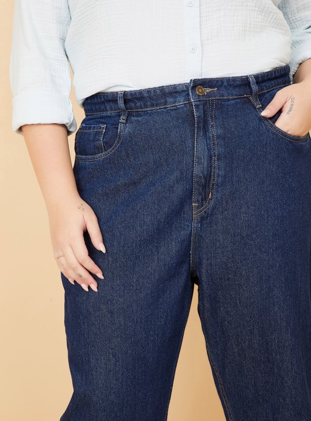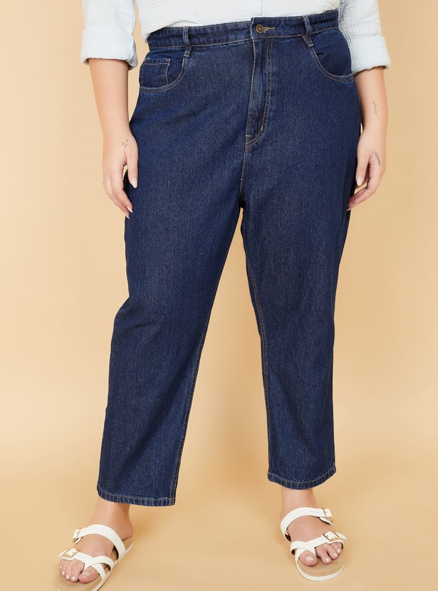 These solid mom-fit jeans offer a relaxed, comfortable fit with a button closure and belt loops for a secure, customizable look. With high rise and five pockets for practicality, they’re a versatile addition to any wardrobe. Model Size :
