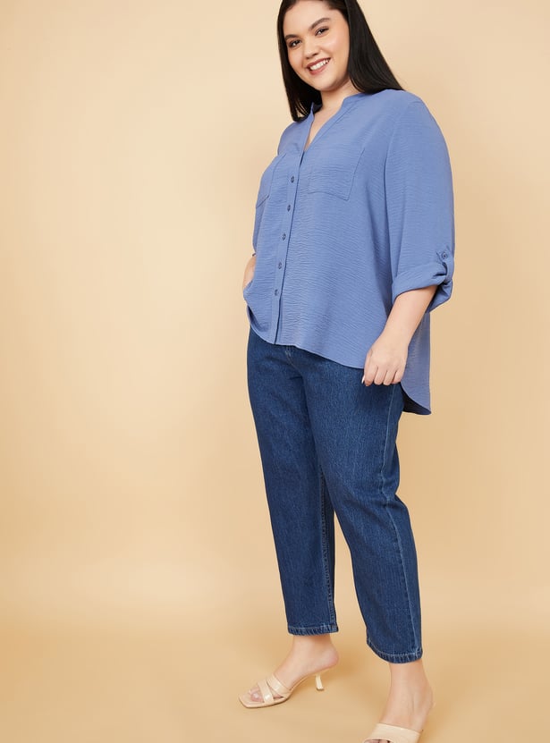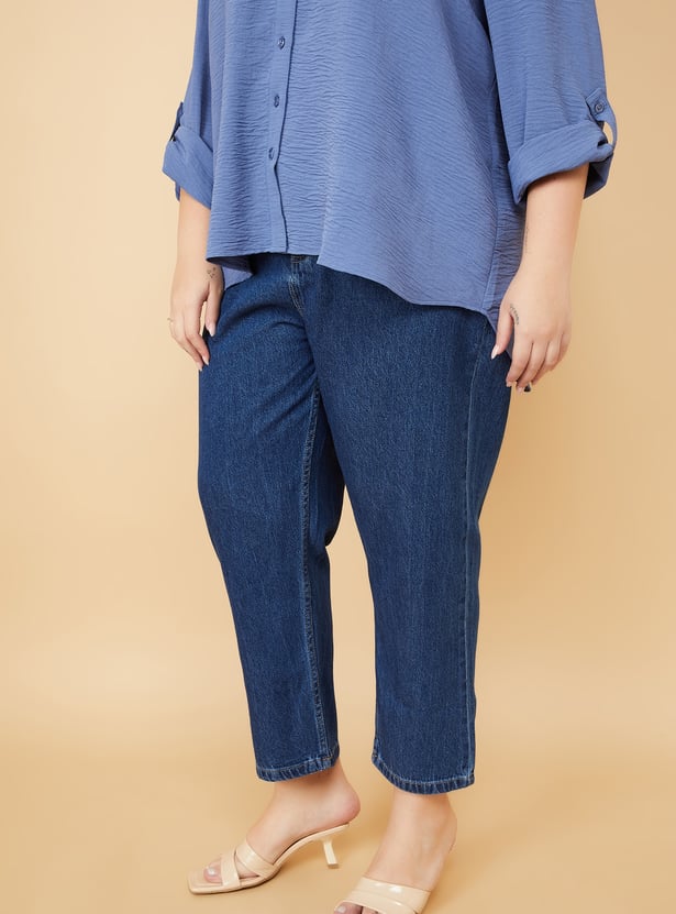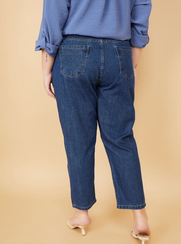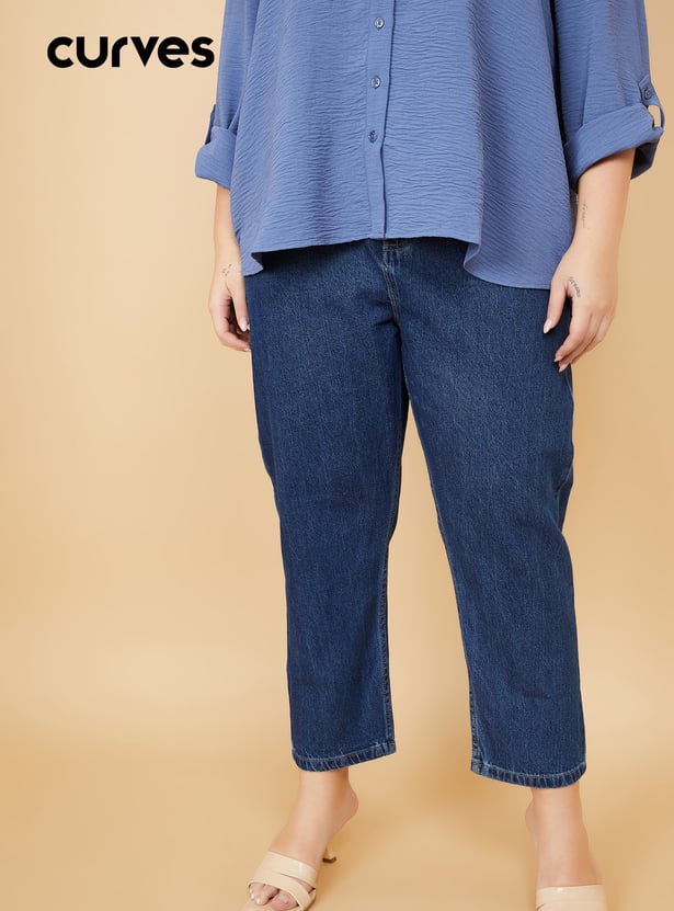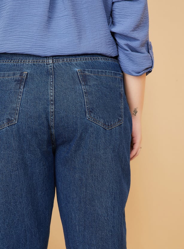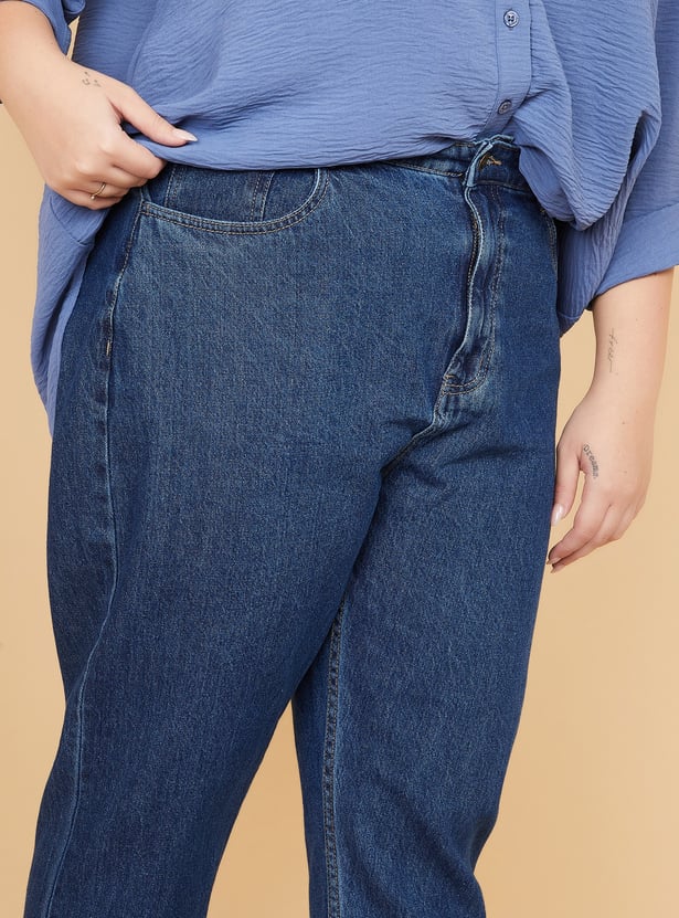 Women Washed High Rise Mom Fit Jeans